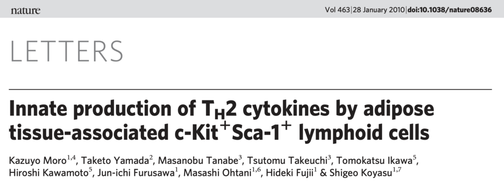 ラボミーティングの場において、毎回毎回「lineage negative c-kit positive Sca-1 positive lymphoid cells」という文言を呪文のごとく聞かされて、20年近くが経った今でもそらんじられるわけですが、それが後に免疫学会を揺るがす自然リンパ球(Innate lymphoid cells: ILC)の発見につながるとは当時の私にはまったく理解できていませんでした。